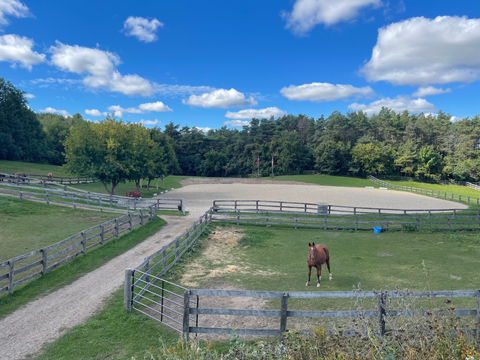 Tack room with oversized lockers for boarders. Tack room also has tack cleaning area with hot and cold water.